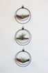 three black circular wall mounted plant hangers on white background